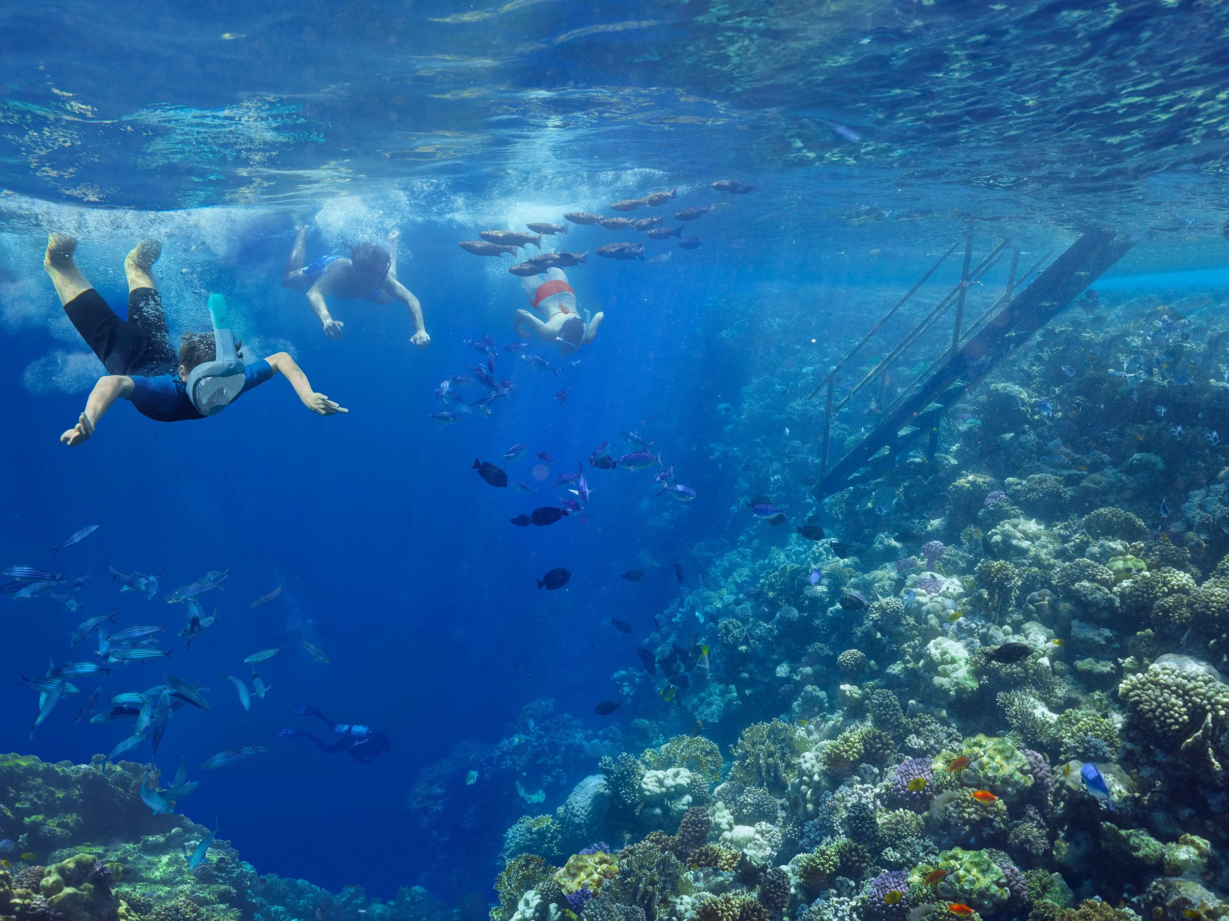 Von der Küste aus erreicht man über den Steg auch das Hausriff, das sich hervorragend zum Schnorcheln anbietet und spannende Unterwasser‑Erlebnisse verspricht. Material kann man vor Ort ausleihen.